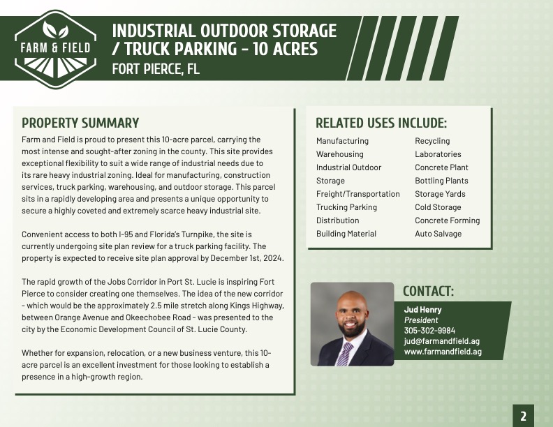services, truck parking, warehousing, and outdoor storage. This parcel